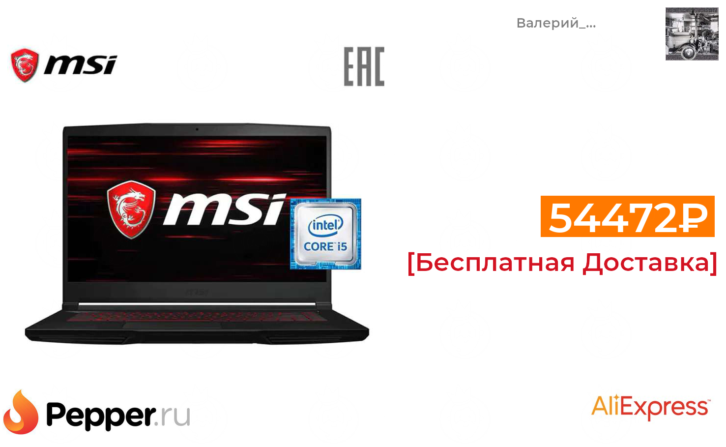 🔹Ноутбук MSI GF63 15.6" FHD/Intel Core i5-9300H/16Gb/256Gb SSD/no ODD/NVidia GTX1650Ti /4Gb/DOS 54472₽ ❗️🔥