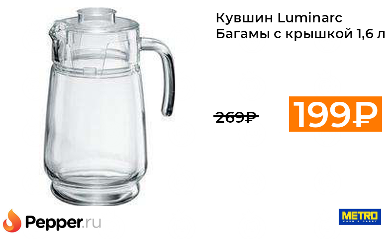 🔹Кувшин Luminarc Багамы с крышкой 1,6 л 199₽ ❗️🔥(везде от 269₽)