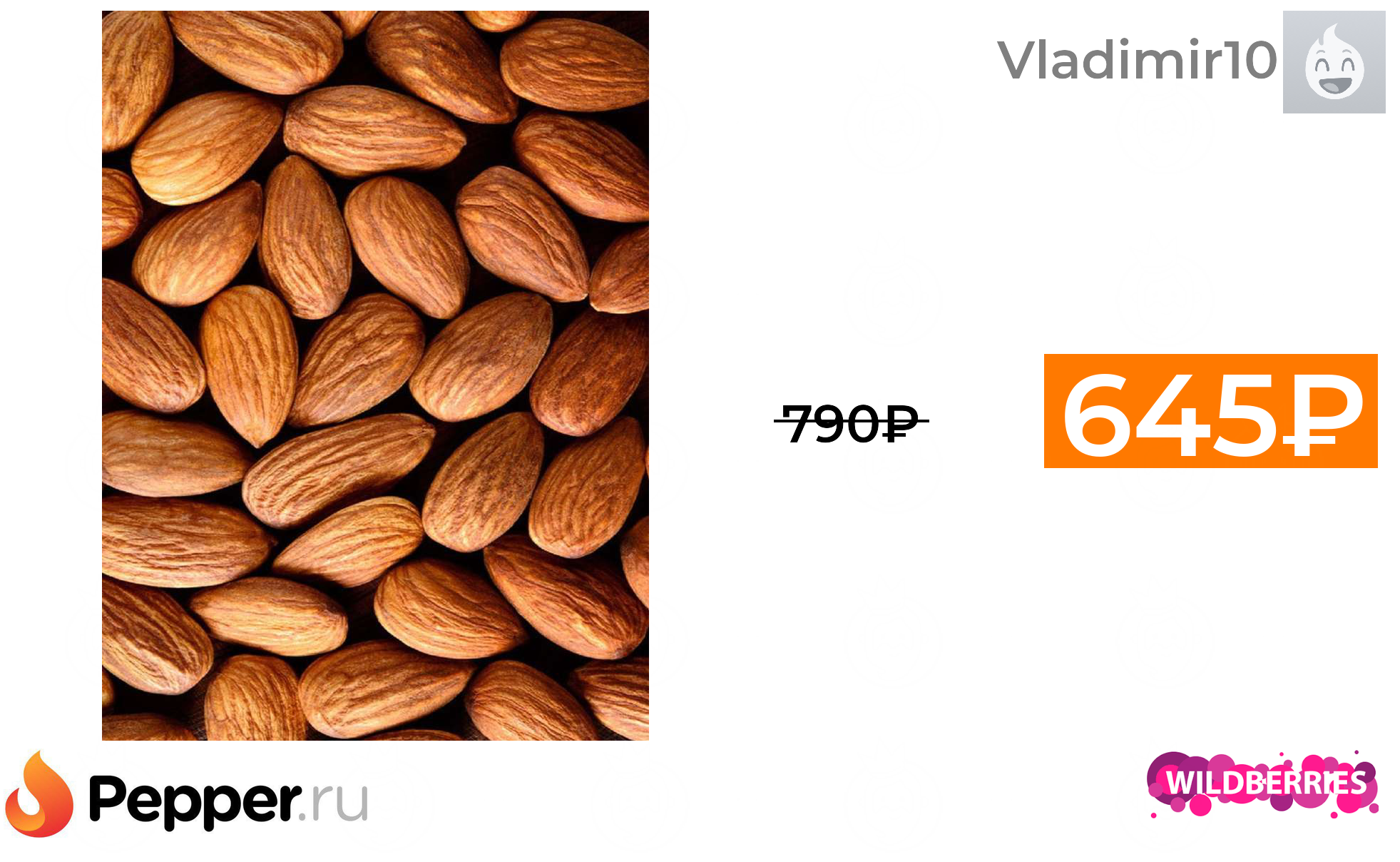🔹Миндаль очищенный сырой Ореховый восторг 1кг 645₽ ❗️🔥(везде от 790₽)