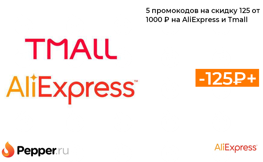 🔹5 промокодов на скидку 125 от 1000 ₽ на AliExpress и Tmall ❗️🔥