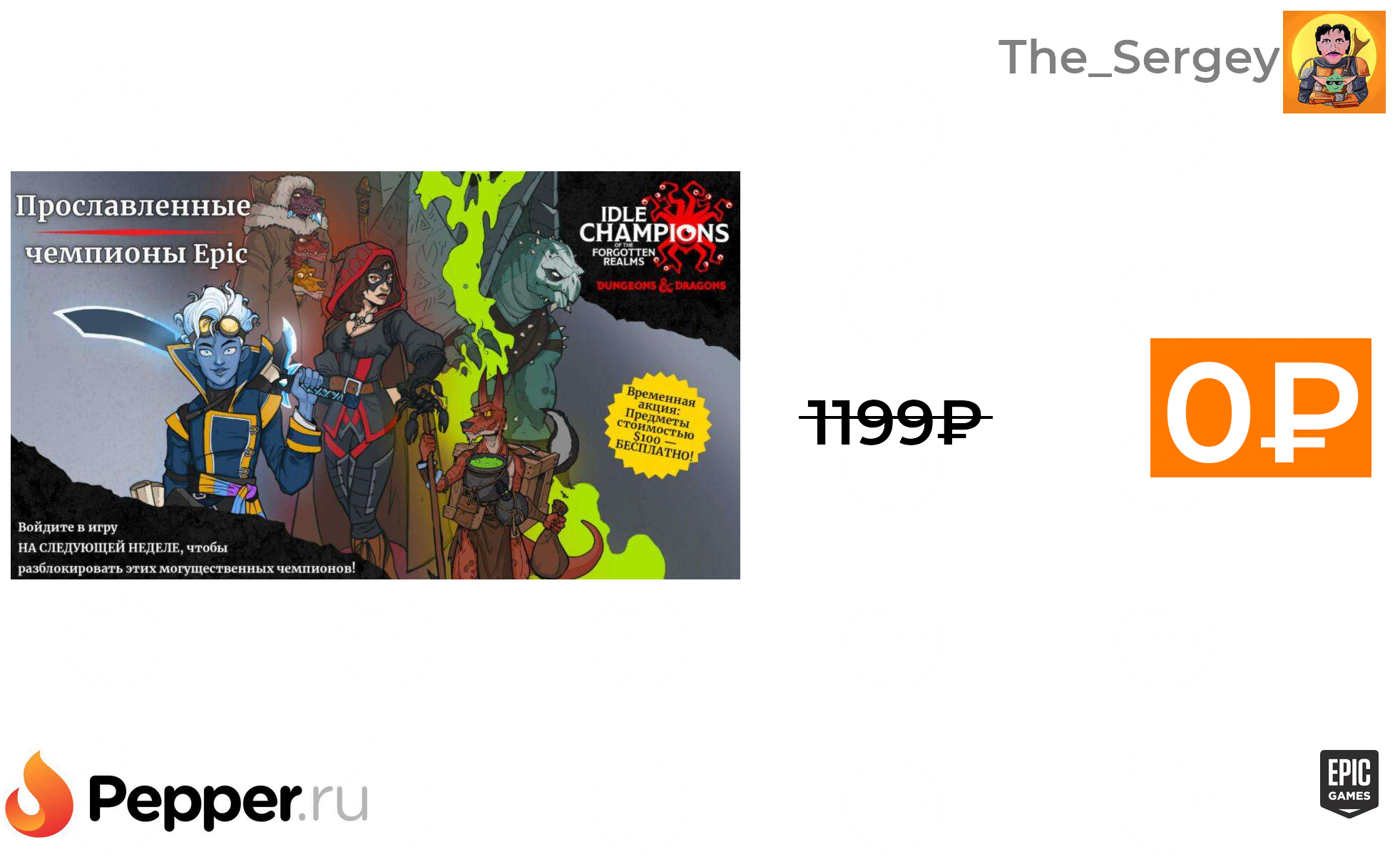 🔹[PC] Набор «Epic Champions of Renown» для Idle Champions бесплатно (за вход в игру) ❗️🔥(везде от 1199₽)