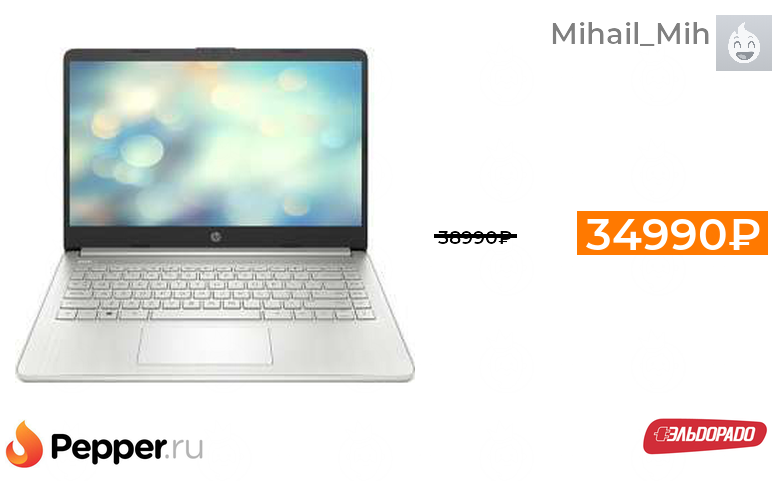 🔹Ноутбук HP 14s-fq0005ur IPS Ryzen 5 4500U/8/256 Гб 34990₽ ❗️🔥(везде от 38990₽)
