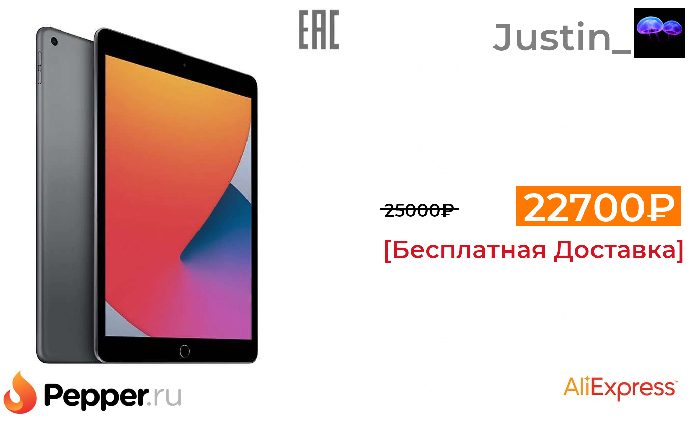 🔹Планшет Apple 10.2" iPad Wi-Fi 32 ГБ (2020) 22700₽ ❗️🔥(везде от 25000₽)