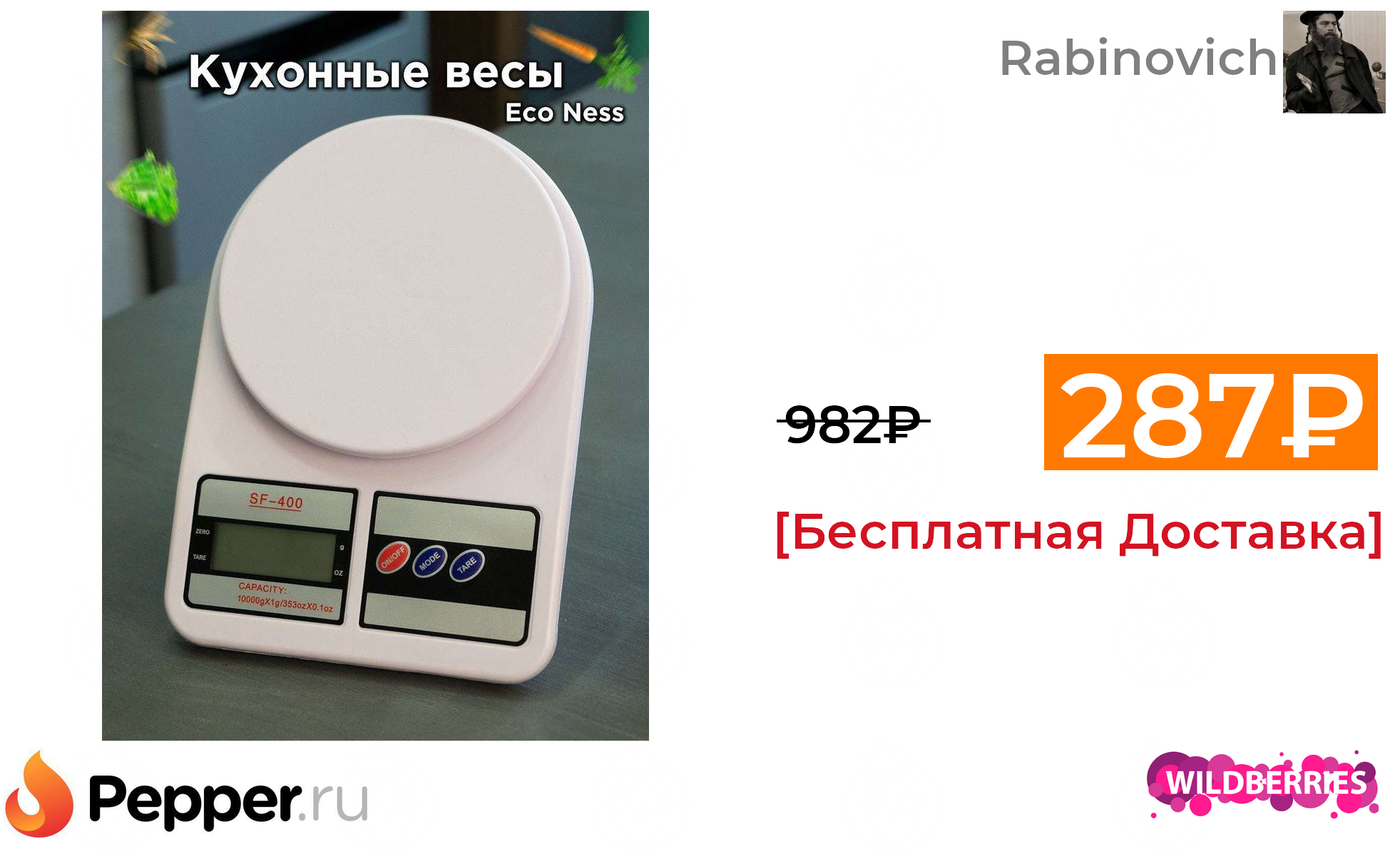 🔹Весы кухонные электронные Eco Ness SF-400 287₽ ❗️🔥(везде от 982₽)