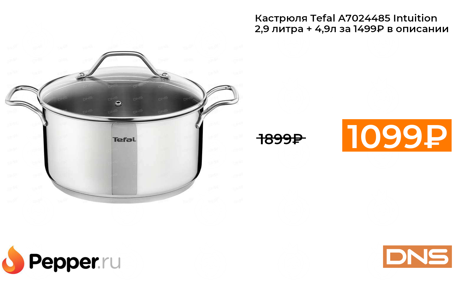 🔹Кастрюля Tefal A7024485 Intuition 2,9 литра + 4,9л за 1499₽ в описании ❗️🔥(везде от 1899₽)