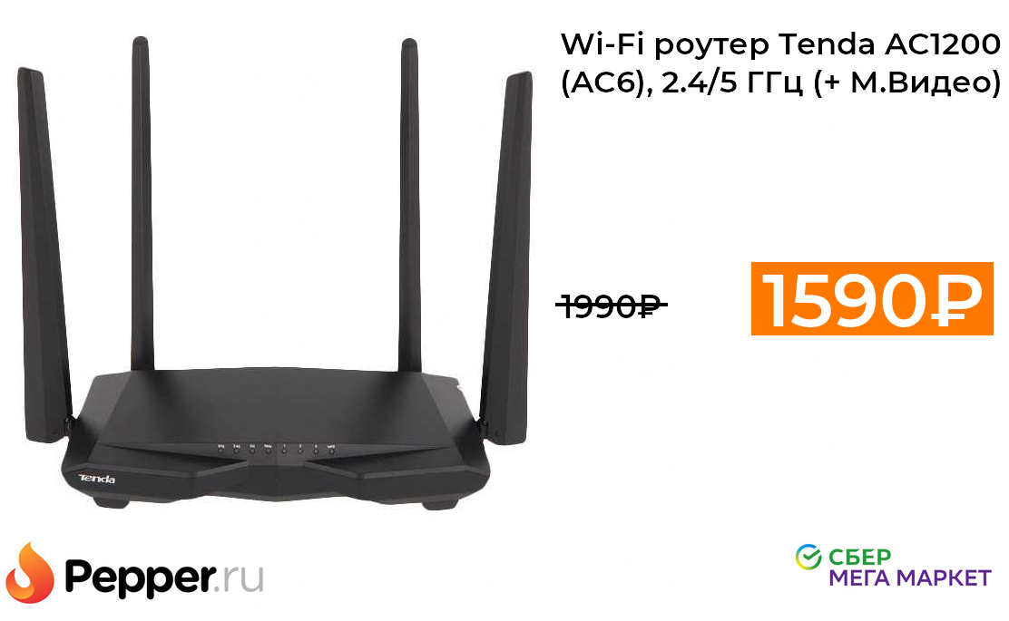 🔹Wi-Fi роутер Tenda AC1200 (AC6), 2.4/5 ГГц (+ М.Видео) 1590₽ ❗️🔥(везде от 1990₽)