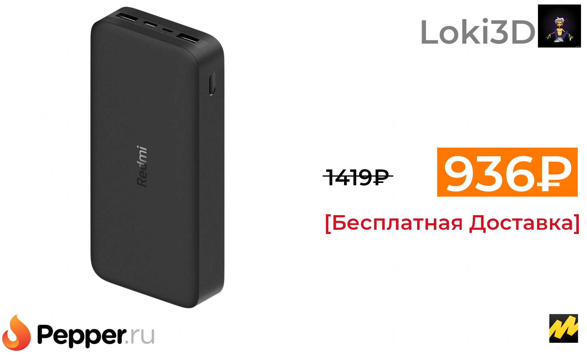 🔹Аккумулятор Xiaomi Redmi Power Bank Fast Charge 20000 mAh, черный 936₽ ❗️🔥(везде от 1419₽)