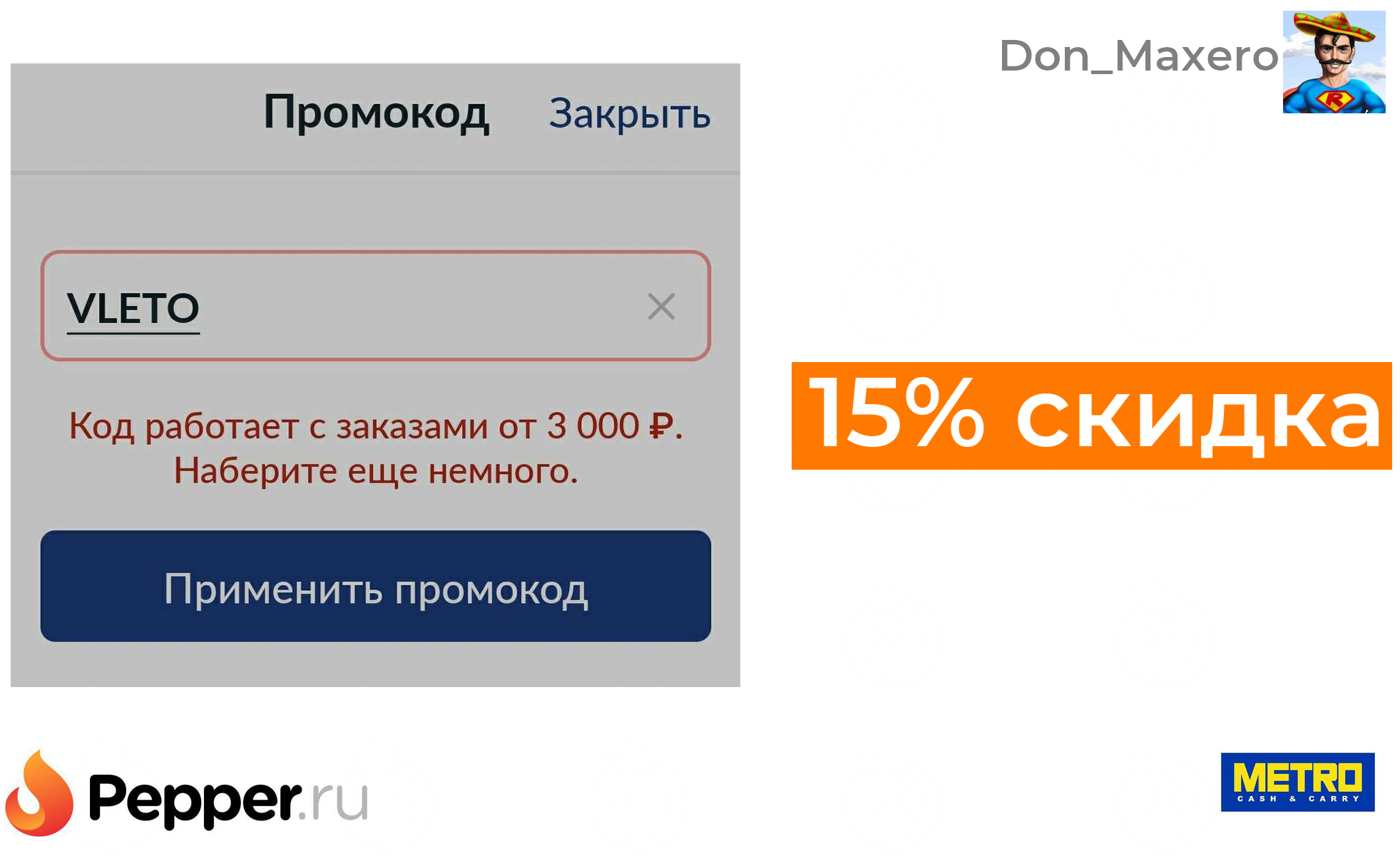 🔹Скидка в МЕТРО 15% при заказе от 3000 ❗️🔥