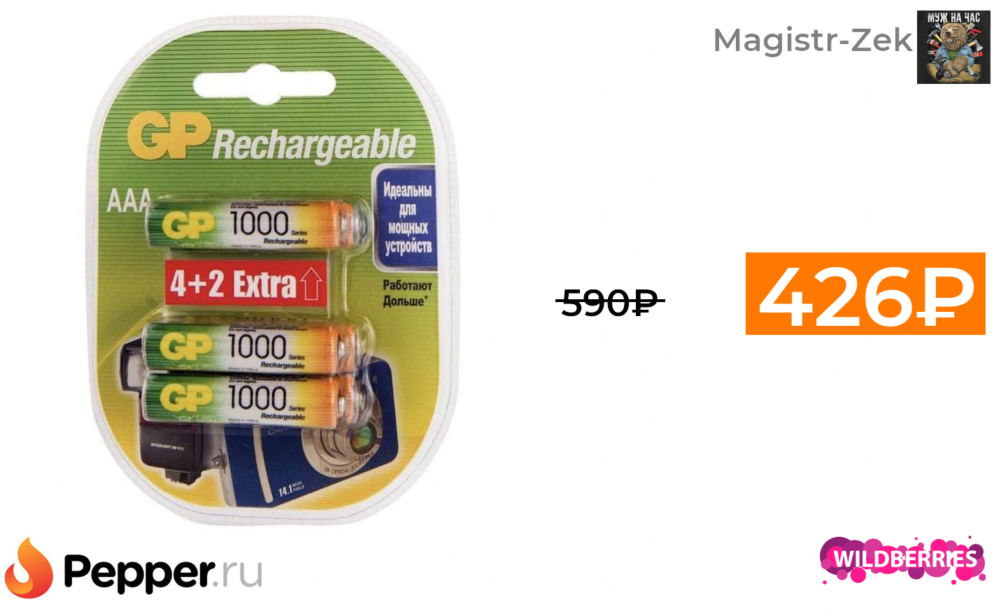 🔹Элемент питания GP 1000мА 6 шт. 426₽ ❗️🔥(везде от 590₽)