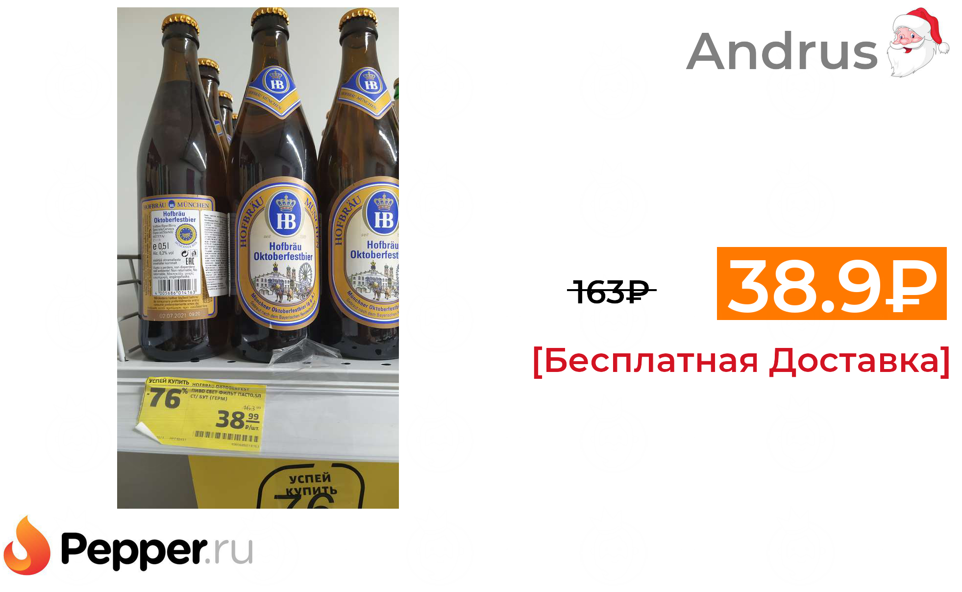 🔹[Липецк] Пиво Hofbräu München Oktoberfestbier светлое 6,3% 0,5л (Германия) 38.99₽ ❗️🔥(везде от 163₽)