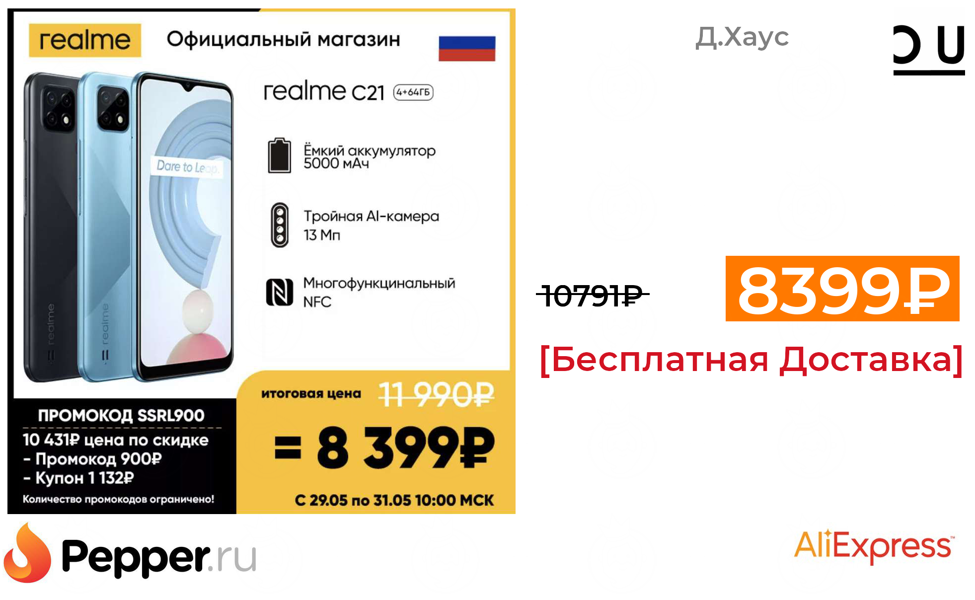 🔹Смартфон Realme C21 4/64 NFC на Tmall 8399₽ ❗️🔥(везде от 10791₽)