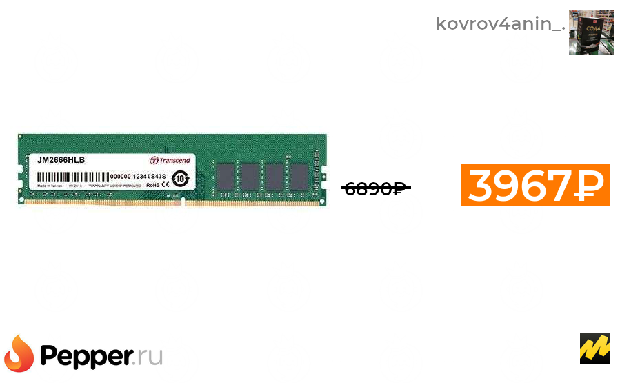 🔹Оперативная память Transcend 2666Мгц DDR4 16 Гб 3967₽ ❗️🔥(везде от 6890₽)