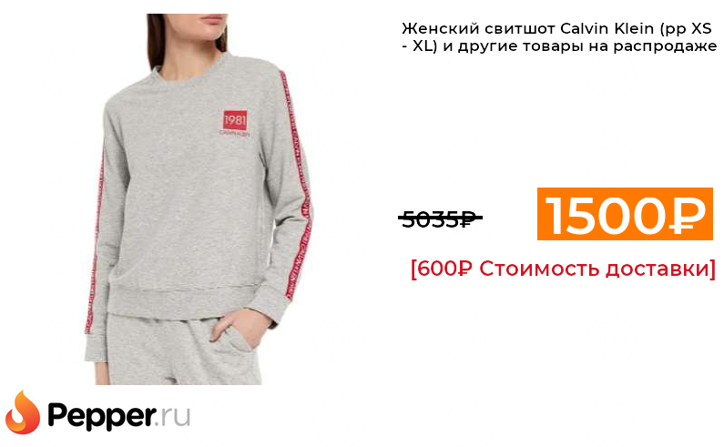 🔹Женский свитшот Calvin Klein (рр XS - XL) и другие товары на распродаже 1500₽ ❗️🔥(везде от 5035₽)