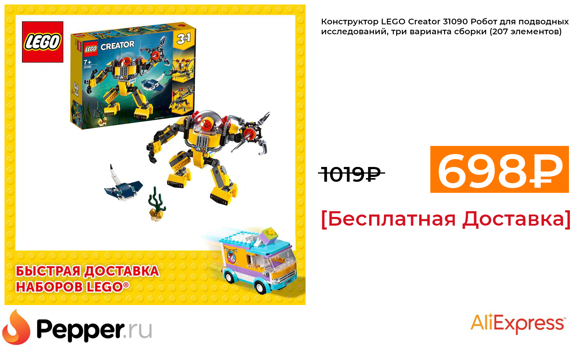 🔹Конструктор LEGO Creator 31090 Робот для подводных исследований, три варианта сборки (207 элементов) 698.5₽ ❗️🔥(везде от 1019₽)