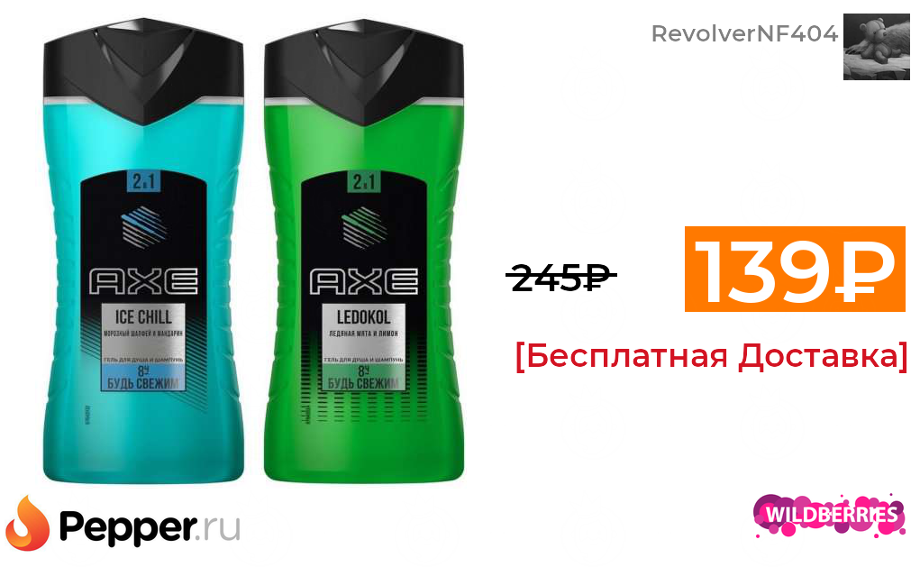 🔹Мужской гель для душа и шампунь AXE ice chill+ledokol (250+250 ml) 139₽ ❗️🔥(везде от 245₽)