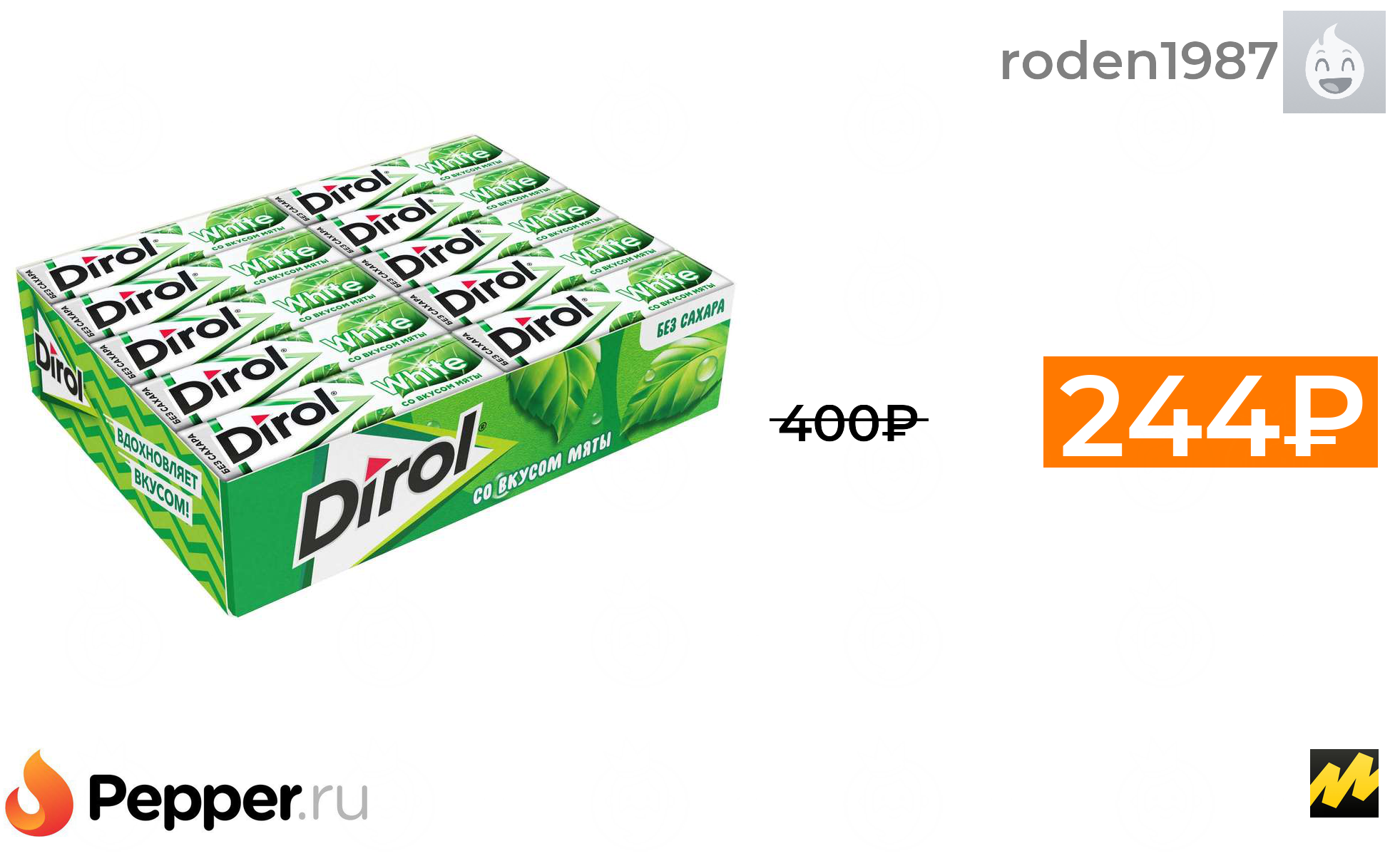 🔹Жевательная резинка Dirol Cadbury White Мята без сахара 30 шт 244₽ ❗️🔥(везде от 400₽)