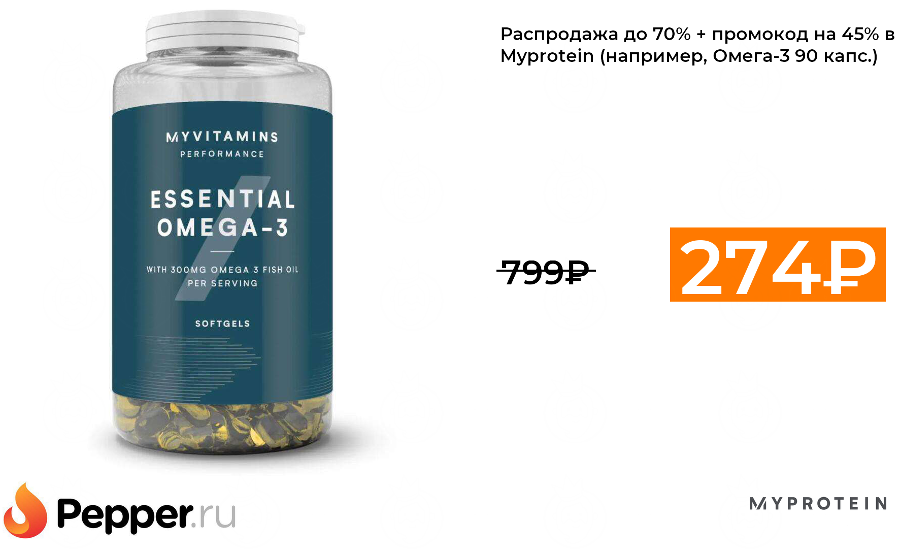🔹Распродажа до 70% + промокод на 45% в Myprotein (например, Омега-3 90 капс.) 274₽ ❗️🔥(везде от 799₽)