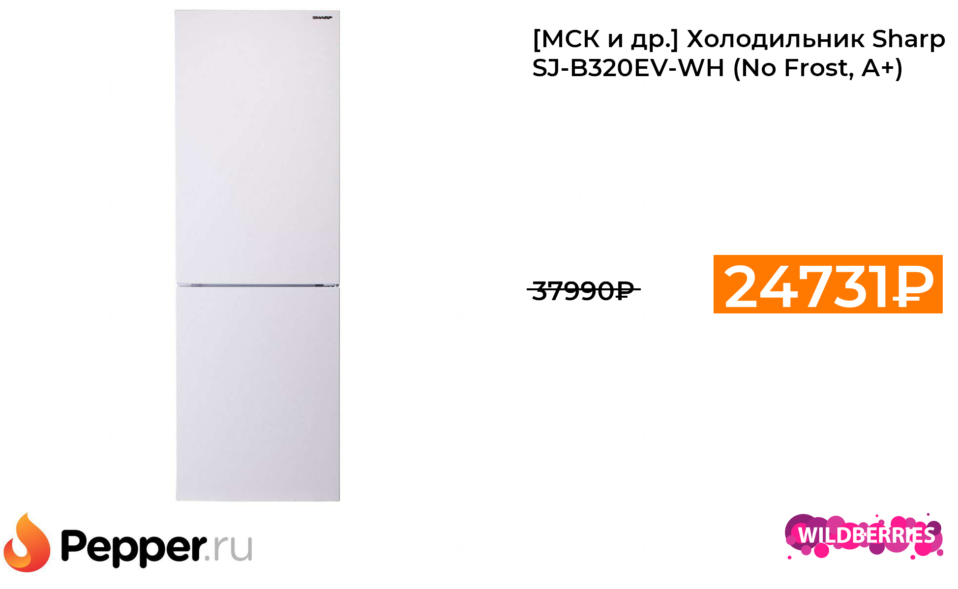 🔹[МСК и др.] Холодильник Sharp SJ-B320EV-WH (No Frost, А+) 24731₽ ❗️🔥(везде от 37990₽)