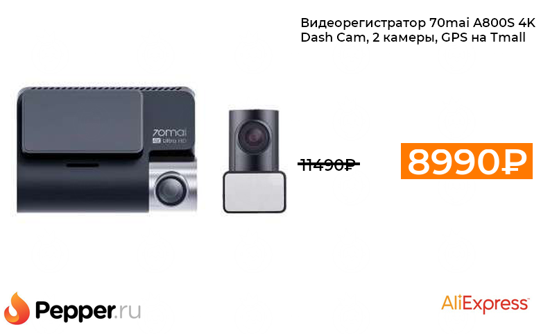 🔹Видеорегистратор 70mai A800S 4K Dash Cam, 2 камеры, GPS на Tmall 8990.1₽ ❗️🔥(везде от 11490₽)