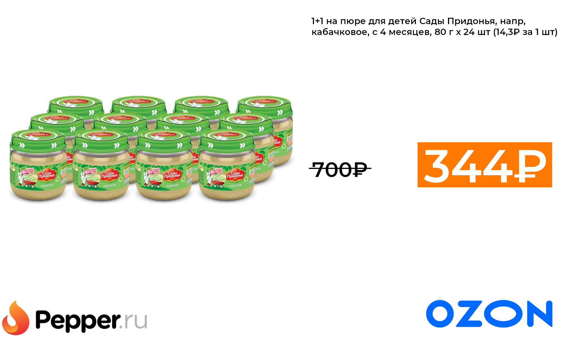 🔹1+1 на пюре для детей Сады Придонья, напр, кабачковое, с 4 месяцев, 80 г х 24 шт (14,3₽ за 1 шт) ❗️🔥(везде от 700₽)