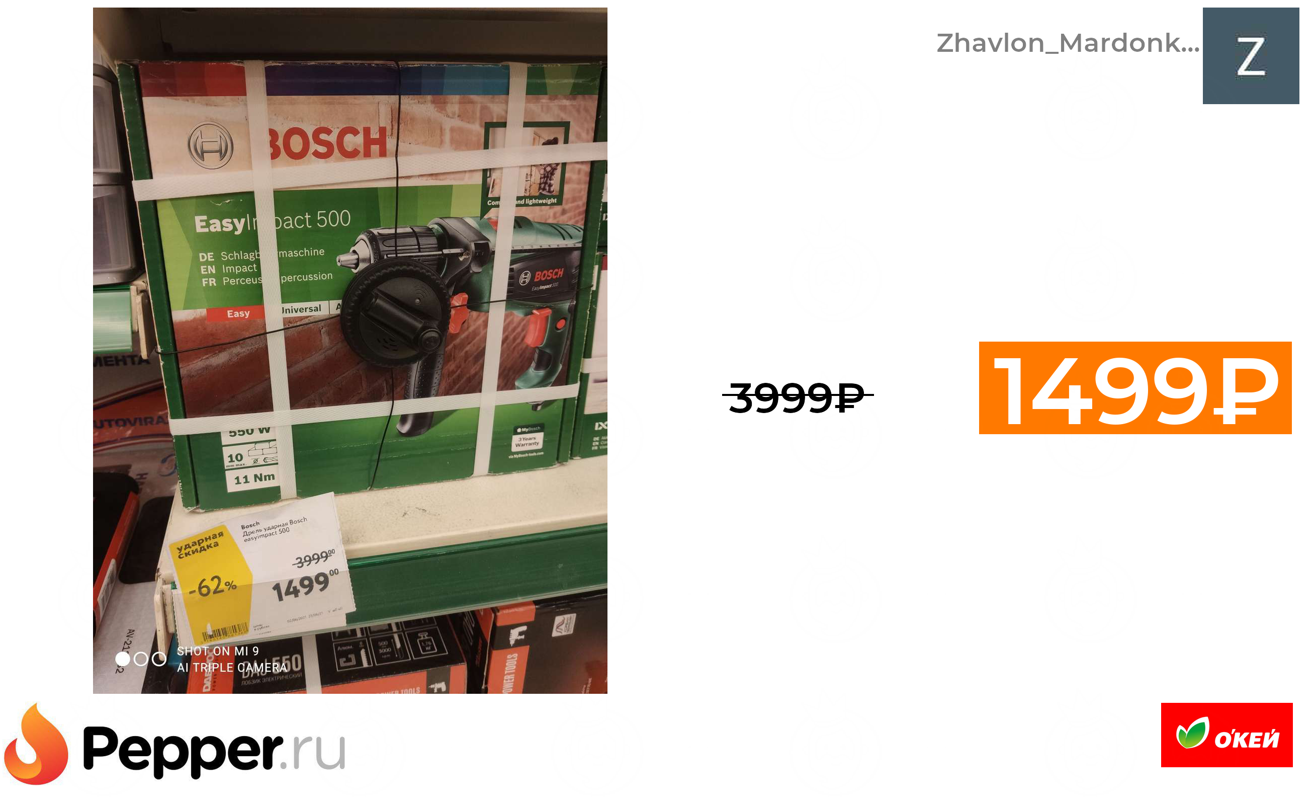 🔹[СПБ] Дрель ударная Bosch EasyImpact 500 1499₽ ❗️🔥(везде от 3999₽)