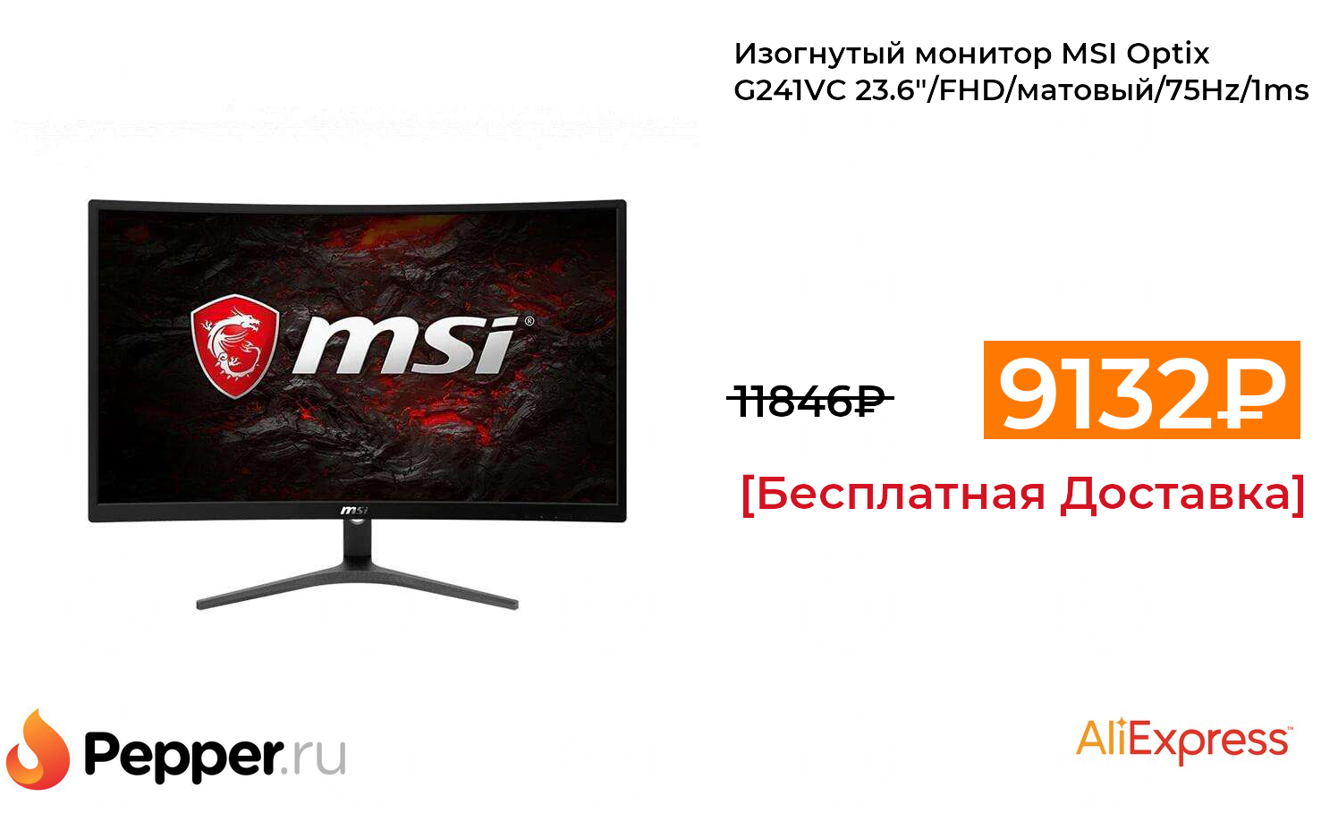 🔹Изогнутый монитор MSI Optix G241VC 23.6"/FHD/матовый/75Hz/1ms 9132₽ ❗️🔥(везде от 11846₽)