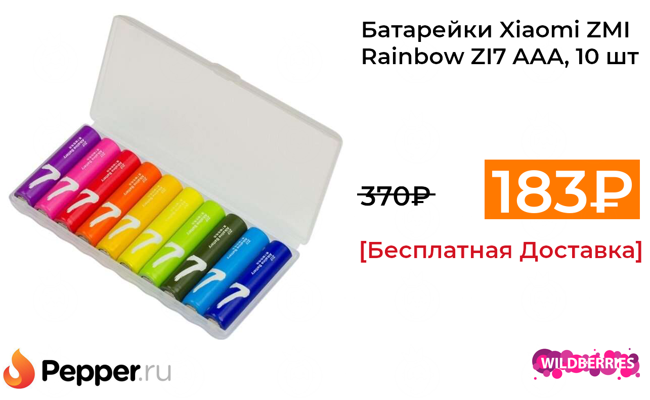 🔹Батарейки Xiaomi ZMI Rainbow ZI7 AAA, 10 шт 183₽ ❗️🔥(везде от 370₽)