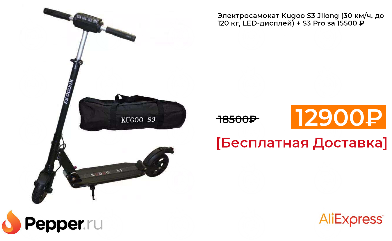 🔹Электросамокат Kugoo S3 Jilong (30 км/ч, до 120 кг, LED-дисплей) + S3 Pro за 15500 ₽ ❗️🔥(везде от 18500₽)
