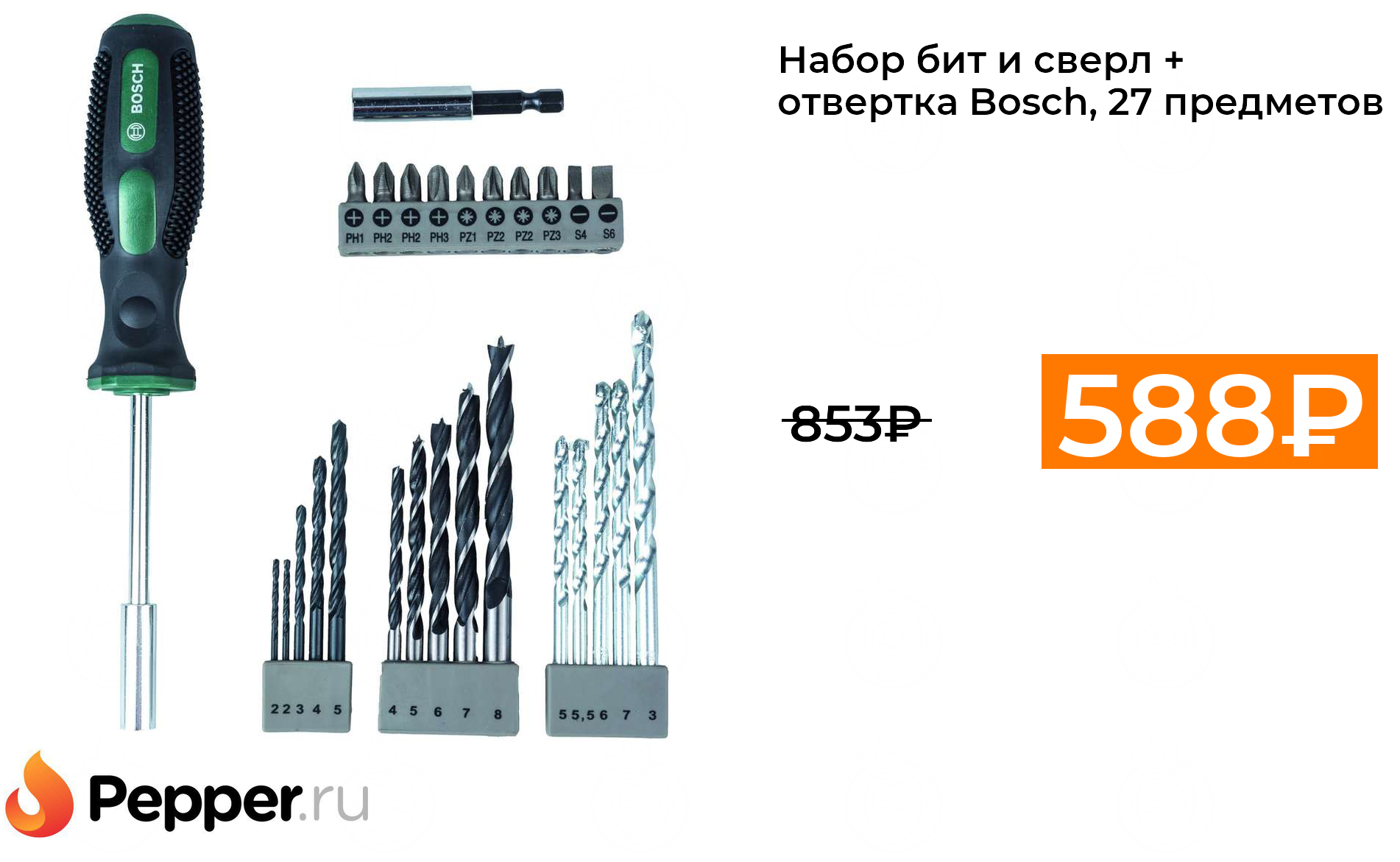 🔹Набор бит и сверл + отвертка Bosch, 27 предметов 588₽ ❗️🔥(везде от 853₽)