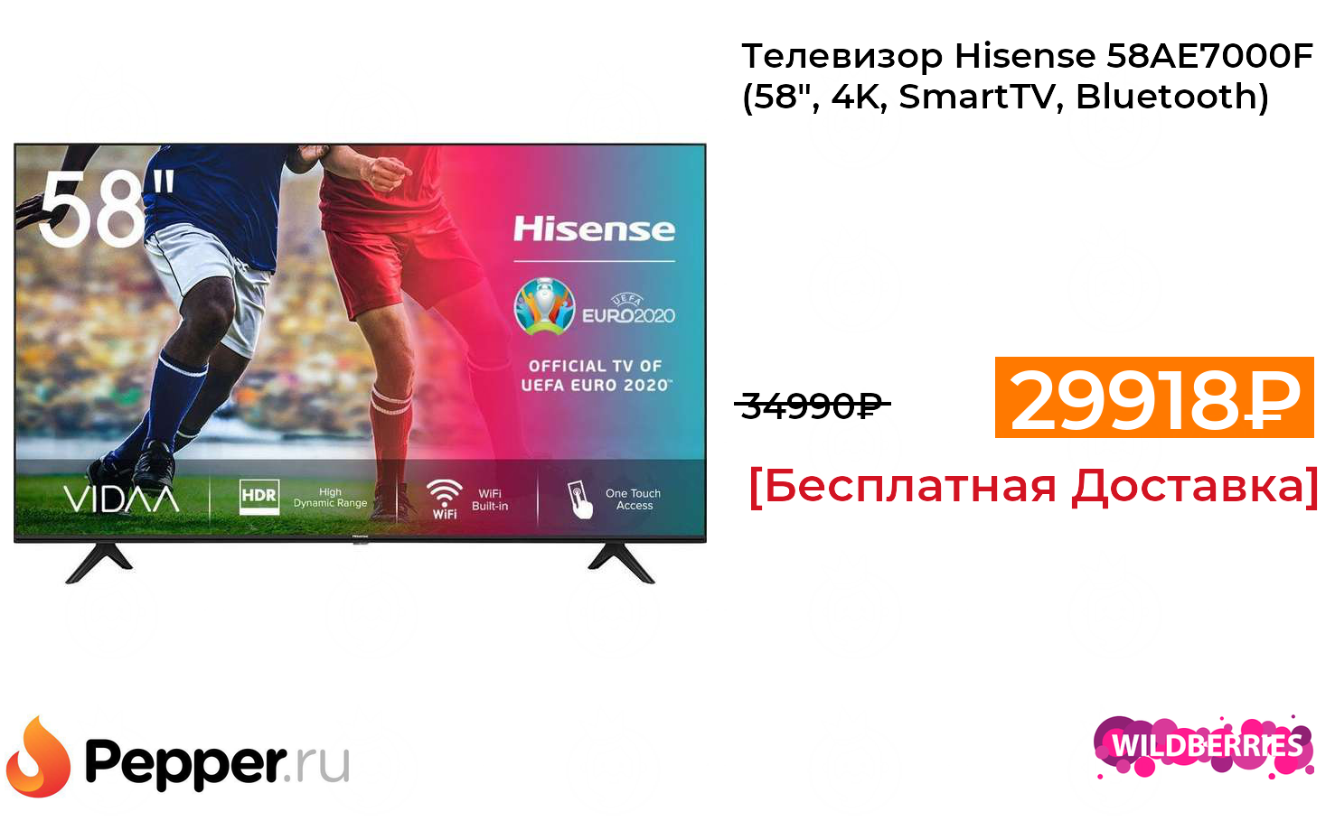 🔹Телевизор Hisense 58AE7000F (58", 4K, SmartTV, Bluetooth) 29918₽ ❗️🔥(везде от 34990₽)