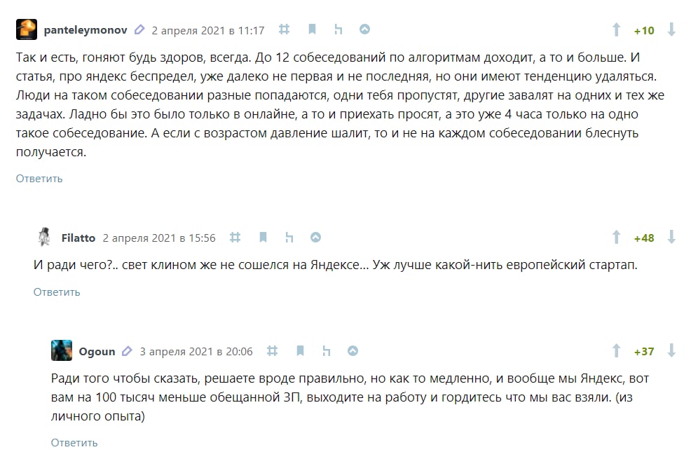 И в Яндексе в то время собеседования были гораздо разумнее. Говорили про архитектуру, просили спроектировать приложение. Только один раз на бумажке попросили написать парсер, но это было терпимо. ТО, что они устроили сейчас - это идиотизм. Такое говно могли родить только эффективные менеджеры, ну или упоротые олимпиадники, которые стали эффективными менеджерами. :)