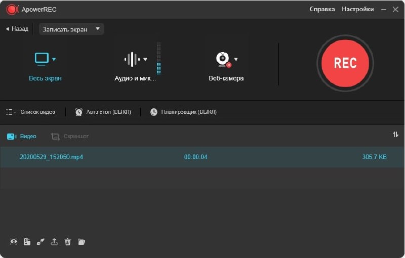 ApowerREC - программа для видеозаписи активности экрана, с возможностью комментировать записи, создавать задания записи, выгружать созданные видеоролики в сеть, делать скриншоты, вы можете использовать ее для создания видеоуроков или коротких домашних видео с помощью веб-камеры.