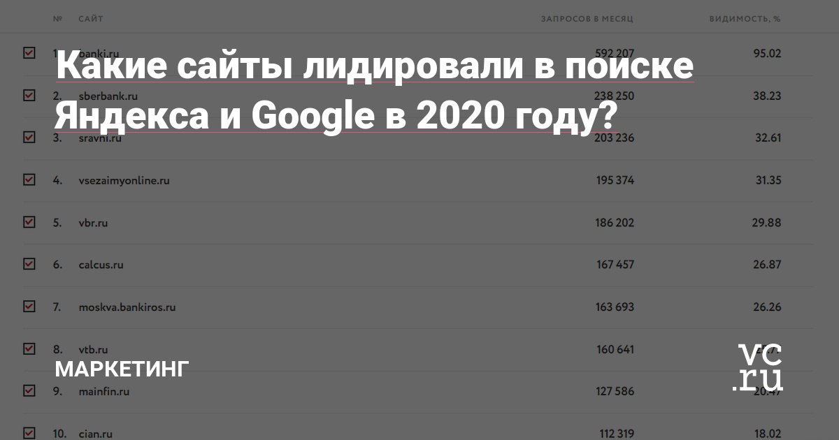 В «Ашманов и партнеры» с 2018 года действует собственный рейтинг видимости сайтов по отраслям, позволяющий оценить свой ресурс и его конкурентное окружение. Ежегодно мы отбираем и награждаем за достижения в SEO победителей рейтинга: лидеров отрасли и самых быстрорастущих в поиске. Так, в этом году в рейтинг отрасли e-commerce впервые победил Ozon, сместив с первой позиции Wildberries, а маркетплейсу Banki.ru удалось выиграть сразу в двух номинациях. Подробнее о том, какие сайты лидировали в поисковых системах в 2020 году, читайте в нашей статье.