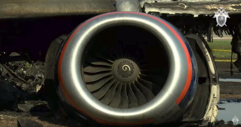 5. SSJ сделал три прыжка по ВПП и на третьем приземлении подломились стойки шасси, что привело к возгоранию двигателей.