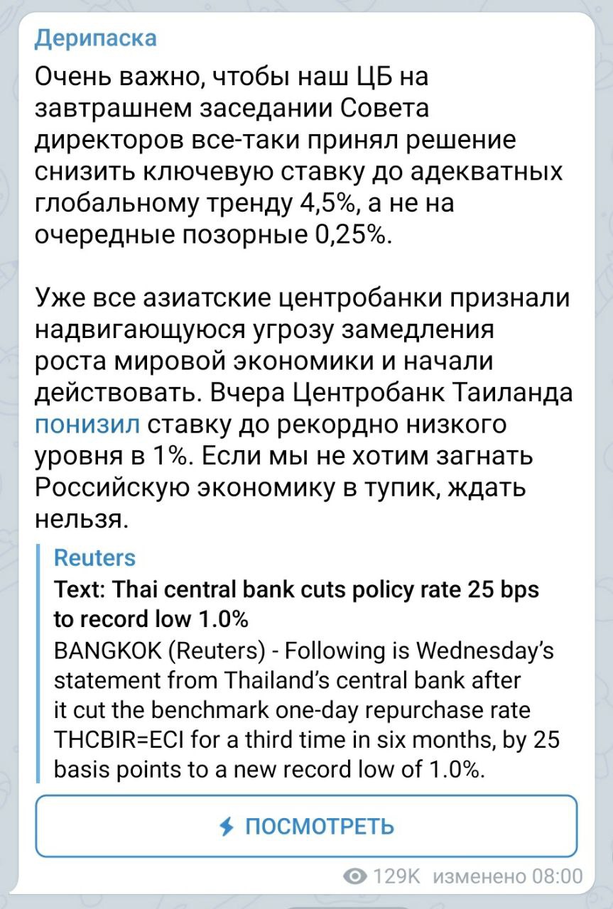 Завтра открываются китайские рынки после длительных каникул, в связи с празднованием китайского нового года. Китайский ЦБ обещает влить 21,7 млрд $ через РЕПО, но это, конечно, не предотвратит панику на рынках. Можно половить падающие ножи, на нефти, например, если дадут.