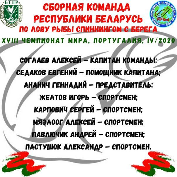 Сборная команда Республики Беларусь, сформированная Белорусским обществом охотников и рыболовов, планирует принять участие в Чемпионате мира в следующем составе: