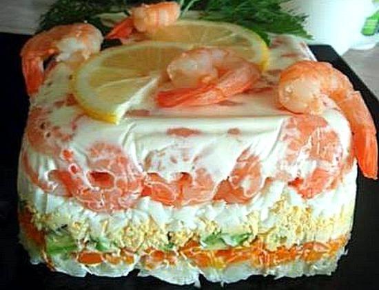 Выбрать форму для салата,в которую будут укладываться все слои.
