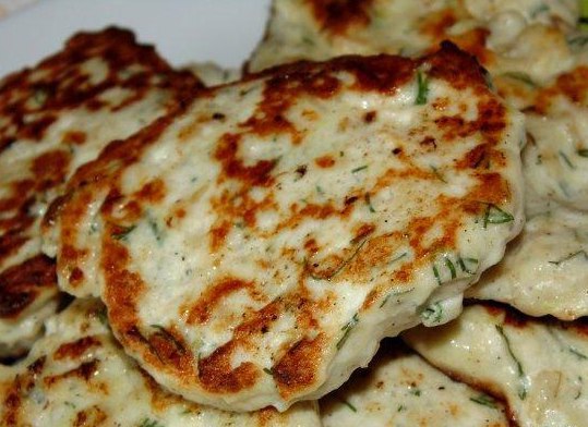 2. Пачка творога, соль, зелень, пара зубчиков чеснока, тертый сыр, кусочки соленого огурца.