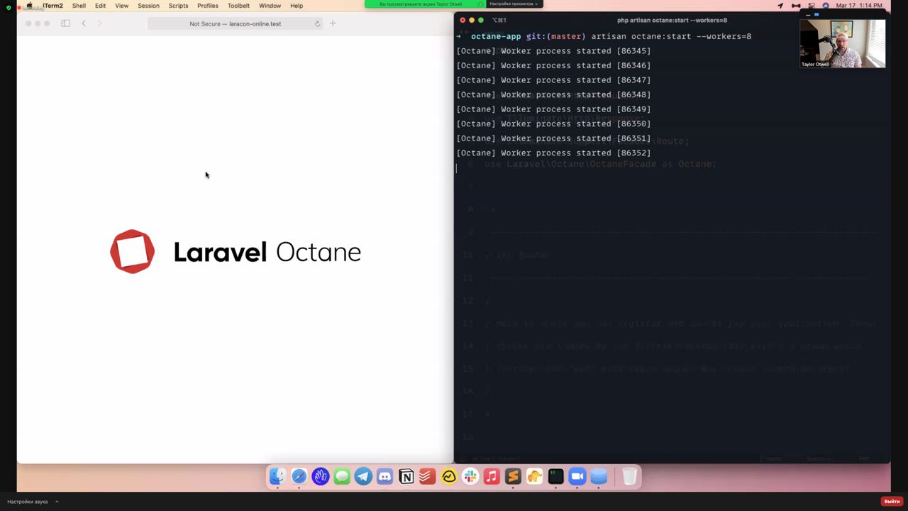 arisan octane:reload, но это может быстро надоесть, поэтому Тейлор позаботился о Hot Reloading: artisan octane:start --workers=8 --watch (работает и для Swoole и для Road Runner)