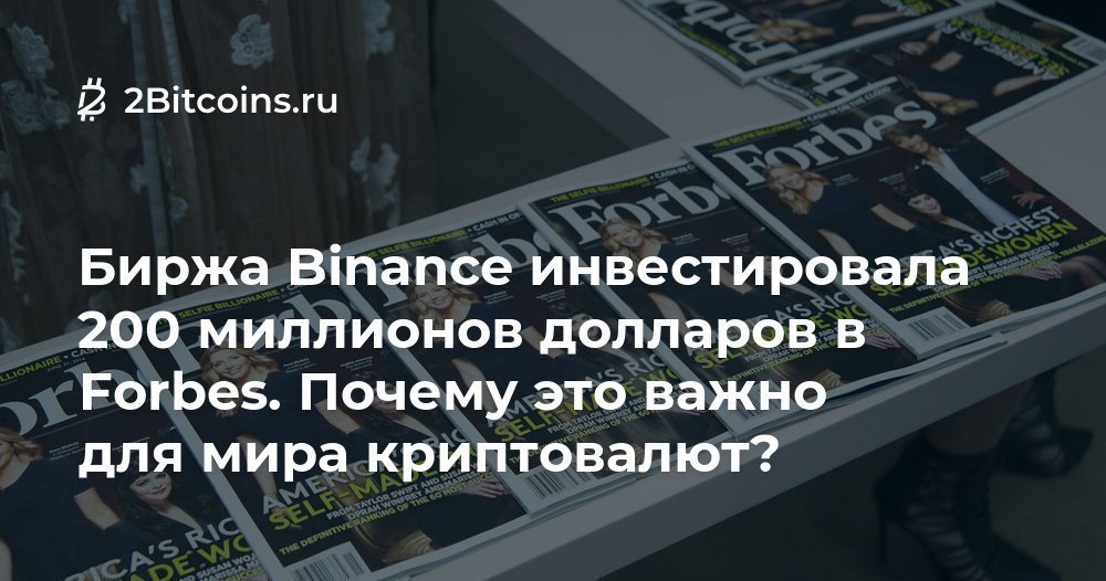 На этой неделе стало известно о вложении биржей Binance 200 миллионов долларов в издание Forbes. И это важное событие для целой индустрии криптовалют. Если пропустили. https://2bitcoins.ru/binance-investirovala-v-forbes/