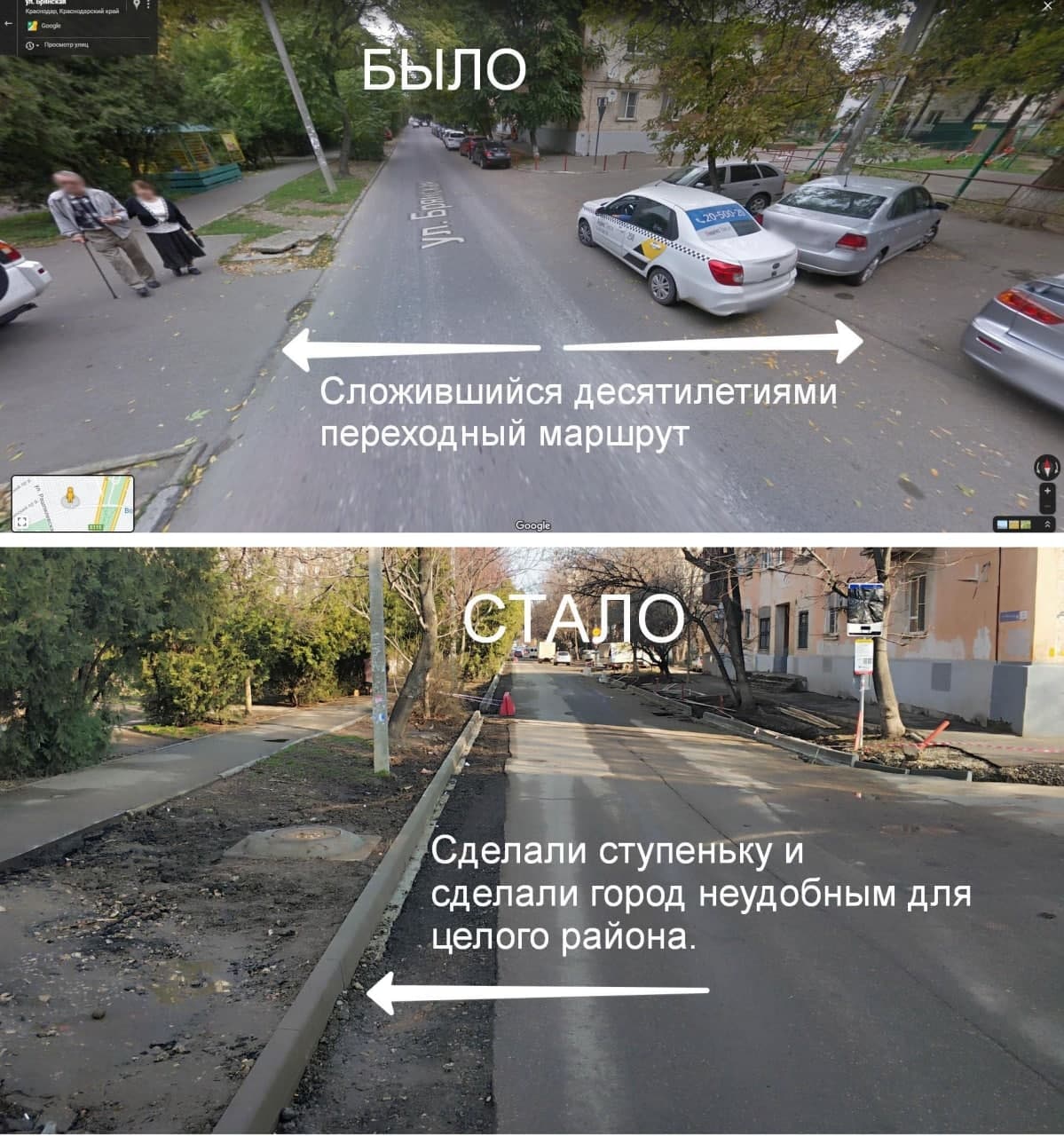 Велосипедисты, инвалиды-колясочники, люди с детскими колясками и другие маломобильные горожане смогут попасть на бульвар только со стороны улицы Гаврилова, сделав километровый крюк, потому что через подземные переходы им это будет сделать трудно или невозможно, а «зебры» через проезжие части на пересечении с Офицерской не предусмотрены. Кстати, «зебры» очень пригодились бы не только посетителям «Авроры», но и местным жителям и пользователям общественного транспорта для беспрепятственного перехода на противоположную сторону улицы транзитом через бульвар.