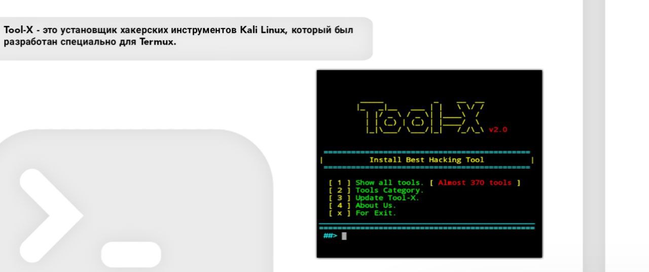 apt update && apt upgrade -ygit clone https://github.com/rajkumardusad/Tool-X.gitcd Tool-Xchmod +x install.aexTool-X