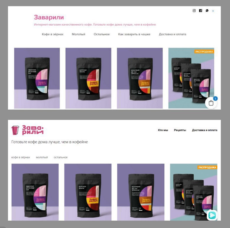 На фото для сравнения морда старой и новой версии магазина. Но самое интересное — на вкладках «Кто мы» и «Рецепты».