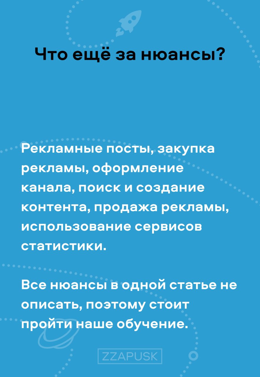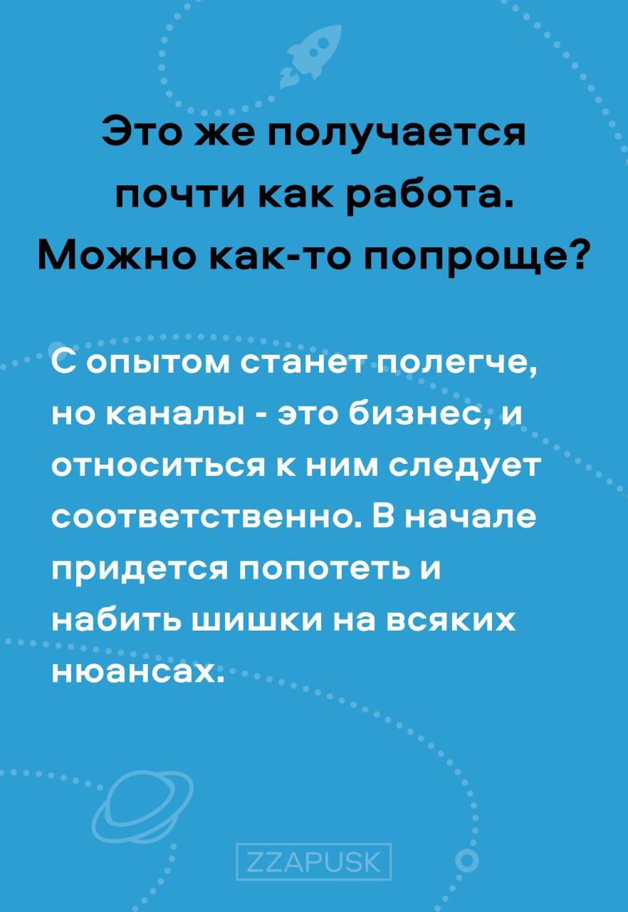 2. Даем очень много практики. Ибо сами практикуем в телеге постоянно, вот тут наши и партнерские каналы: https://t.me/zzapuskmedia;