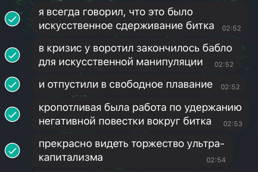 «Читаю отчет Kraken за декабрь, там поименно перечислены финансовые группы, которые переводят резервы в Bitcoin. В том числе фонды, которые начали распродавать золото чтобы купить Bitcoin. Это тектонический сдвиг.»