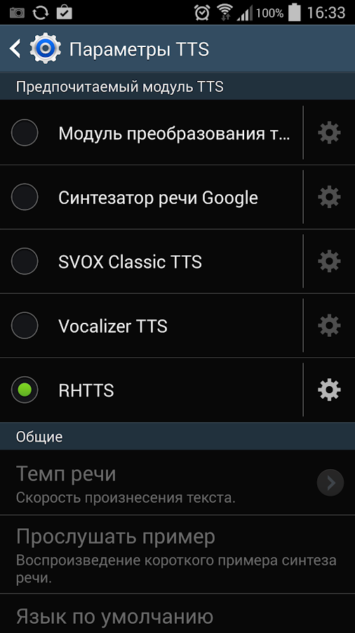 Из бесплатных русских голосов на плей гугле ещё есть голосовой движок RHVoice TTS, написанный слепой русской девушкой - программистом Ольгой Яковлевой, в нем только 1, но хорошо поставленный мужской голос, который читает довольно быстро и разборчиво, для художественной литературы отлично подходит, для научных книг не советую, настроек кроме громкости нет. https://lh4.ggpht.com/7PjcQ9eFjwFcqAA0GYTErt284XbZFEKmapceG-SmsMQ0NddH3TeIRgAwOKgk8-qYlQ=h900-rw
