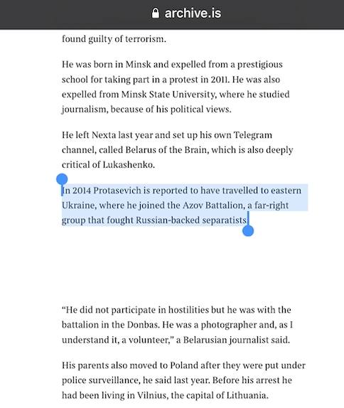 Вообще Протасевич свидетель крайне любопытного и опасного эксперимента, который реализуют западные спецслужбы на Украине. Это попытка усадить в один окоп террористов диаметрально противоположных взглядов - радикалов религиозных и радикалов нацистских. Феномен заключается в том, что при стабильном финансировании - они легко уживаются вместе.