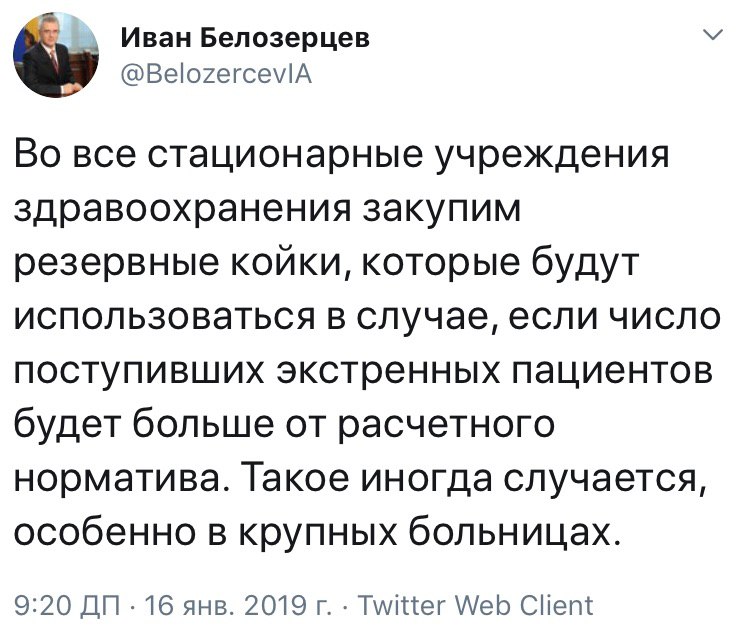 Губернатор Пензенской области пообещал, что для всех больниц в регионе будут закуплены дополнительные кровати; об этом Иван Белозерцев написал в своем твиттере после того, как в сети распространились фотографии с койками из досок больнице в Кузнецке.