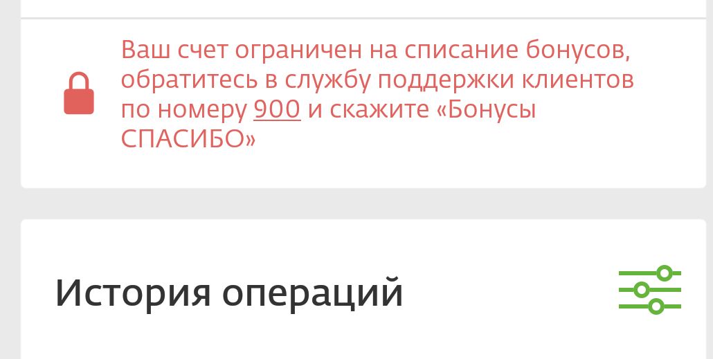 Не знаю в тему ли, но как-то нужно было крупно прогнать карту на чесноке (стройка) при расходах за 850 позвонила тетенька со сбера и крупно так насрала в ухо, что сберу не нравиться крупные расходы и она принимает решения по блокировке бонусной программы, висела аналогичная табличка, все было абсолютно честно и накопленные бонусы не тратились, в дальнейшем бонусная программа разблокировалась сама собой, примерно через 2-3 месяца