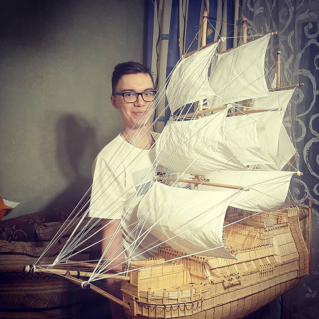 «У меня всегда была тяга к морю, я люблю корабли — особенно парусники. И как-то в интернете мельком увидел, что делают модели из спичек и решил попробовать. Сама модель придумана полностью из головы», — заявил изданию Роман. Он также добавил, что сейчас ищет покупателя на свою работу. Стоимость корабля — 50 тысяч рублей.